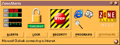 ZoneAlarm is an InterNet Firewall, designed to keep hackers and ALL other unauthorized sources from accessing your computer and/or the information that it contains. ZoneAlarm makes Internet security and control accessible by all types of users. ZoneAlarm provides several interlocking security services that deliver easy-to-use, comprehensive protection that makes using the Internet inherently safer. To date, more than three million PC users have downloaded ZoneAlarm to protect their Internet connected computers, making it the de facto standard in the category.